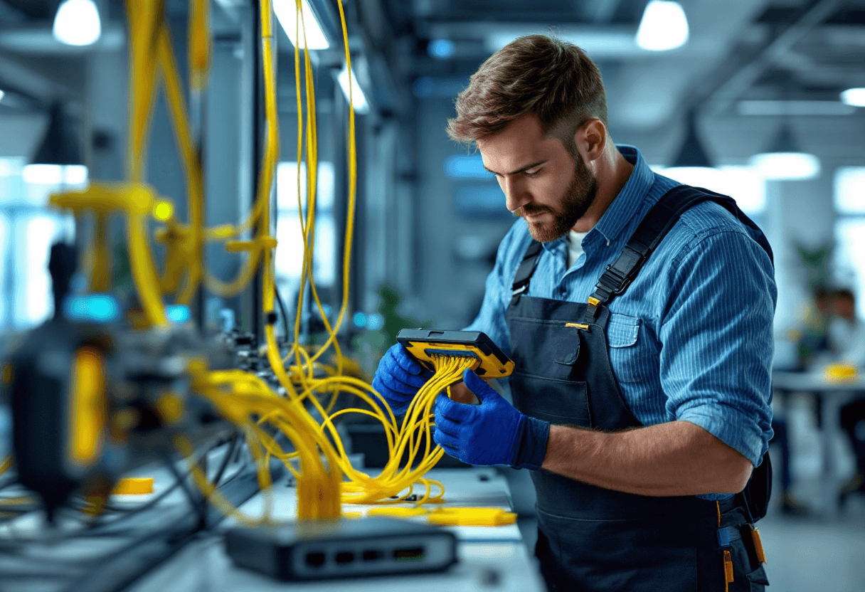 Nous vous accompagnons dans vos projets de raccordement, installation et maintenance de réseaux fibre optique.